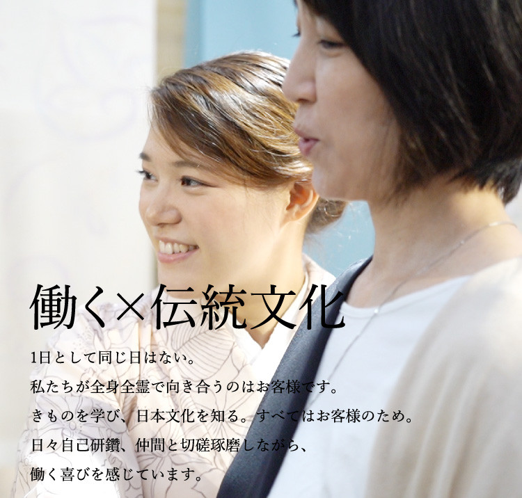 私たちは今後も「きものを着たい人を着る人に」をメインテーマに努力研鑽を重ね幸せと喜びが溢れるきものライフを創造していきます。